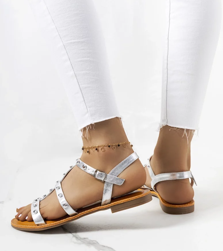 Model Somerset zjawiskowo ozdobią letnie outfity. Cholewka ma bardzo ciekawy i stylowy wzór. Wykonana została z wysokiej jakości skóry ekologicznej w metalicznym wykończeniu. Miękka wkładka zapewni komfort podczas długich letnich spacerów. Numeracja zaniżona, sugerujemy wybrać rozmiar większe.