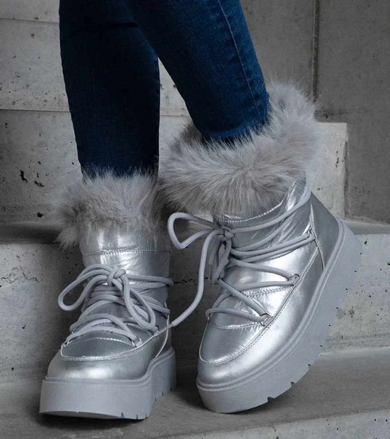 Srebrne ocieplane śniegowce z futerkiem Arilla to idealny wybór dla młodego pokolenia, które ceni sobie styl i wygodę. Te wysokie za kostkę buty na platformie są sznurowane, co dodaje im charakteru i sprawia, że świetnie dopasowują się do stopy. Krój tych śniegowców jest bardzo modny, a dodatkowo są one ocieplane, dzięki czemu zapewniają ciepło nawet w najzimniejsze dni.