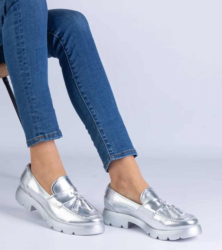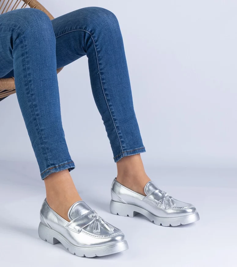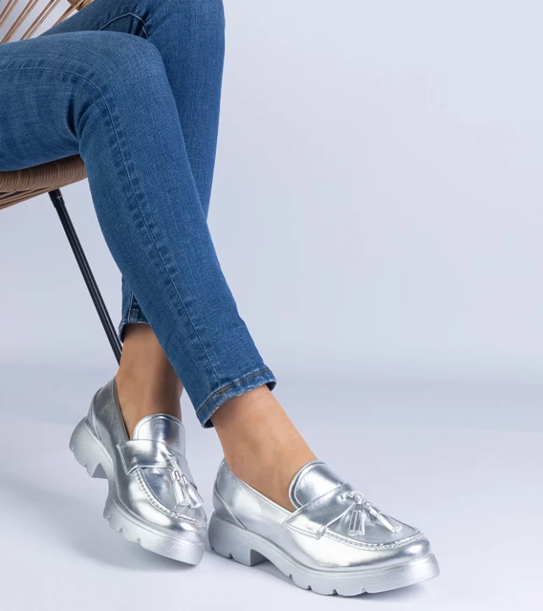 Srebrne półbuty klasyczne z frędzlami Esitta