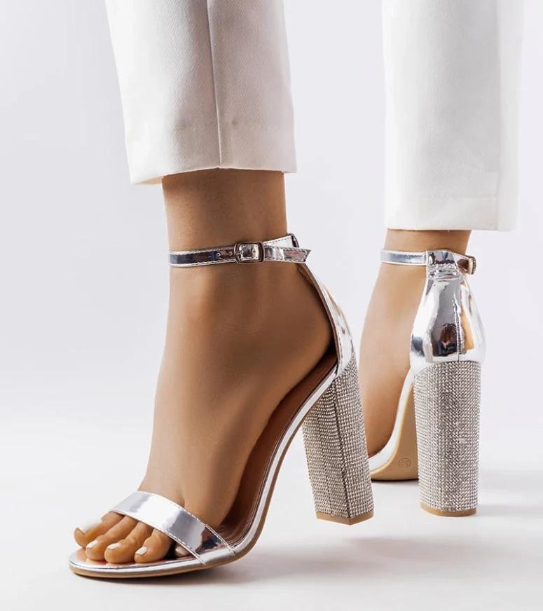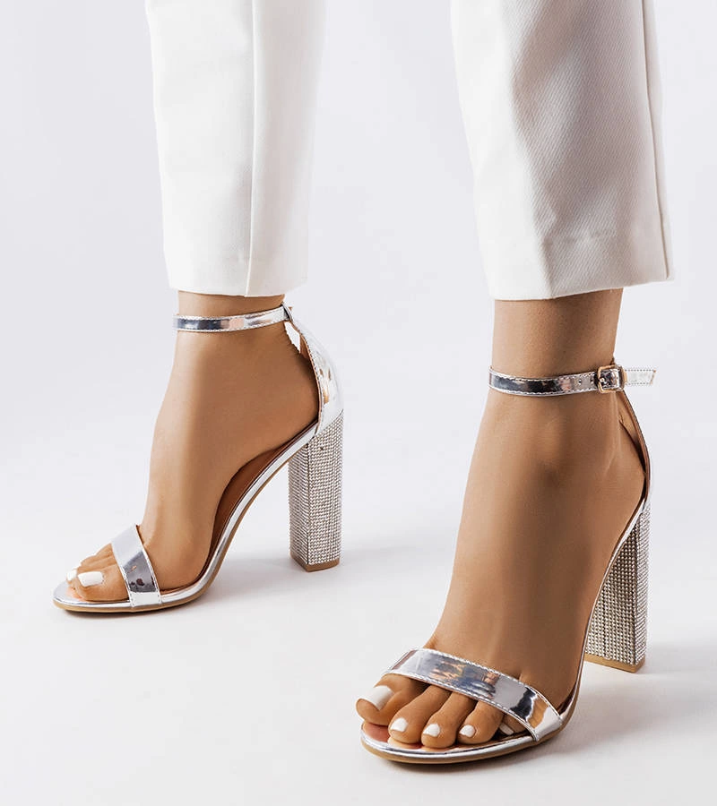 Srebrne sandałki na ozdobnym słupku Rette