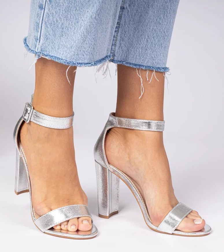 Srebrne sandały na słupku Miledia to doskonały wybór na wiele okazji. Dzięki subtelnemu połyskowi, świetnie sprawdzą się zarówno na wieczorne wyjścia, jak i na codzienne spacery po mieście. Sandały na słupku zapewniają stabilność i wygodę, a zapięcie na kostce dodaje im elegancji i pewności, że pozostaną na swoim miejscu przez cały czas użytkowania.