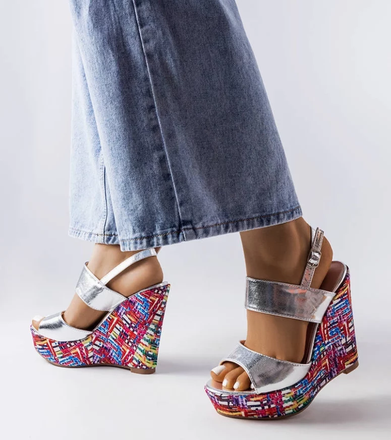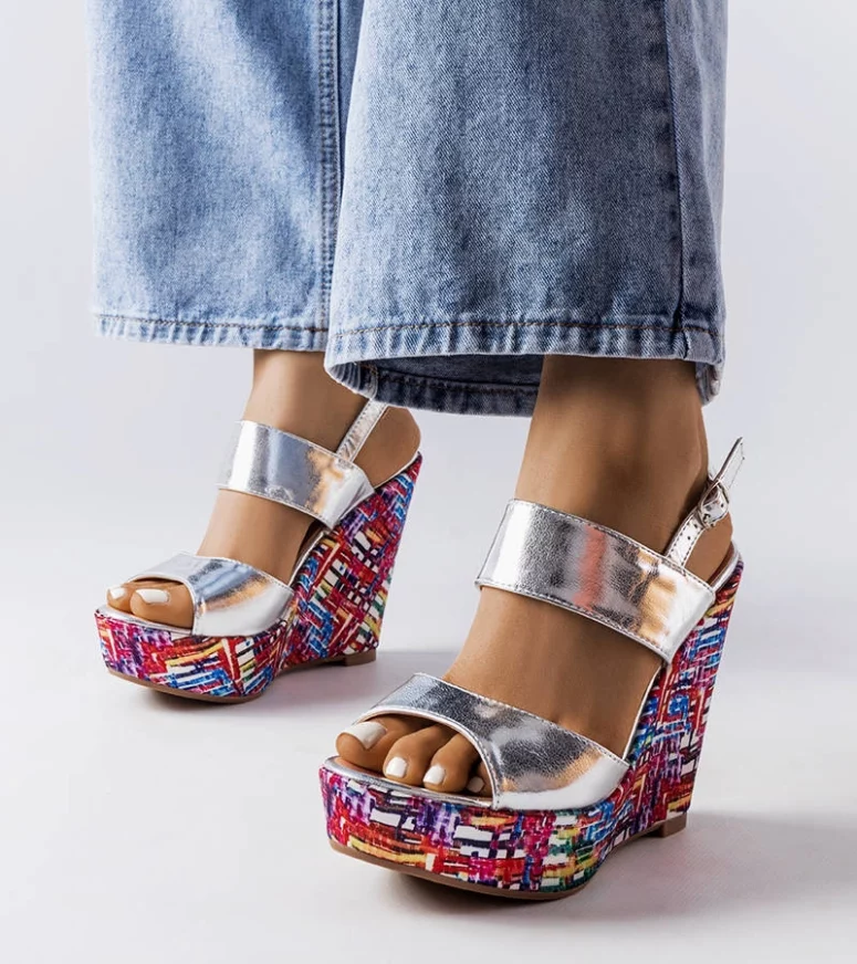Srebrne sandały na zdobionej koturnie Westtide – Gemre