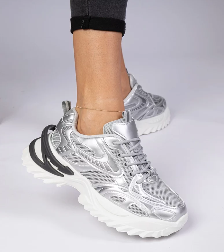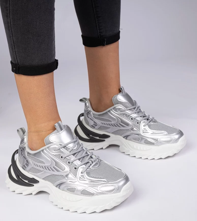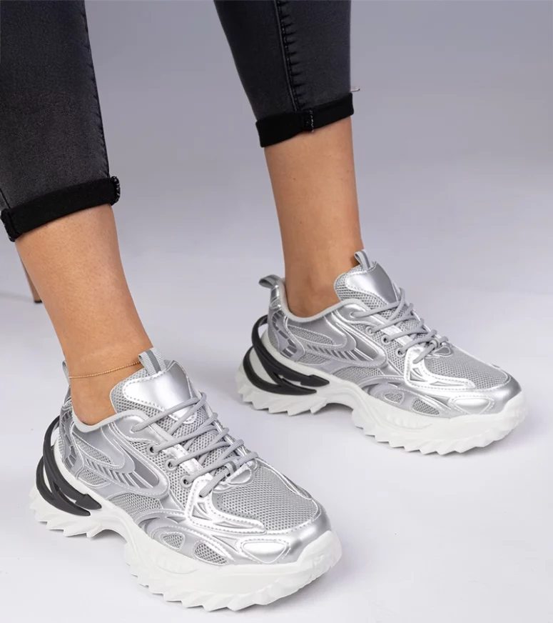 Sneakersy sportowe Lirata wyróżniają się swoją unikalną srebrną kolorystyką, która dodaje każdej stylizacji wyjątkowego charakteru. Masywna podeszwa nie tylko nadaje im modnego wyglądu, ale również zapewnia doskonałą amortyzację i stabilność, co czyni je idealnym wyborem na długie spacery czy intensywne treningi.