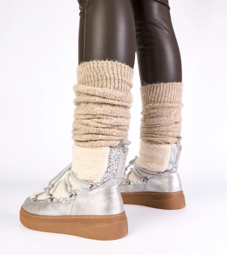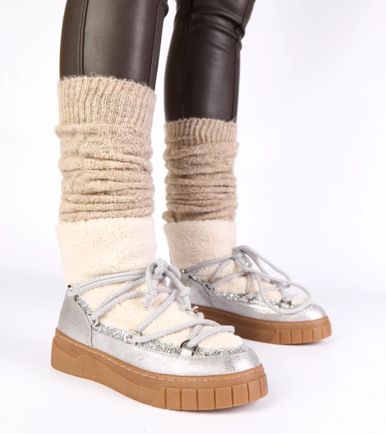 Odkryj wyjątkowe śniegowce damskie stworzone z myślą o kobietach, które cenią sobie wygodę, ciepło i modny wygląd nawet w najchłodniejsze dni. Srebrne śniegowce ocieplane futerkiem z brokatem Esmee marki Gemre to idealne połączenie funkcjonalności i stylu. Ich połyskująca, srebrna powierzchnia z subtelnym brokatem pięknie odbija światło, przyciągając spojrzenia i dodając każdej zimowej stylizacji nuty glamour. To doskonały wybór na codzienne wyjścia do miasta, zimowe spacery czy wyjazdy w góry.