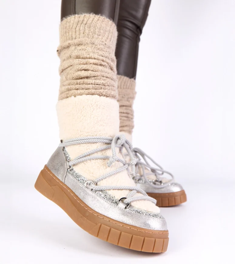 Słowa kluczowe: srebrne śniegowce, śniegowce damskie Gemre, śniegowce ocieplane futerkiem, śniegowce z brokatem, śniegowce Esmee, zimowe buty damskie.