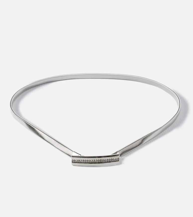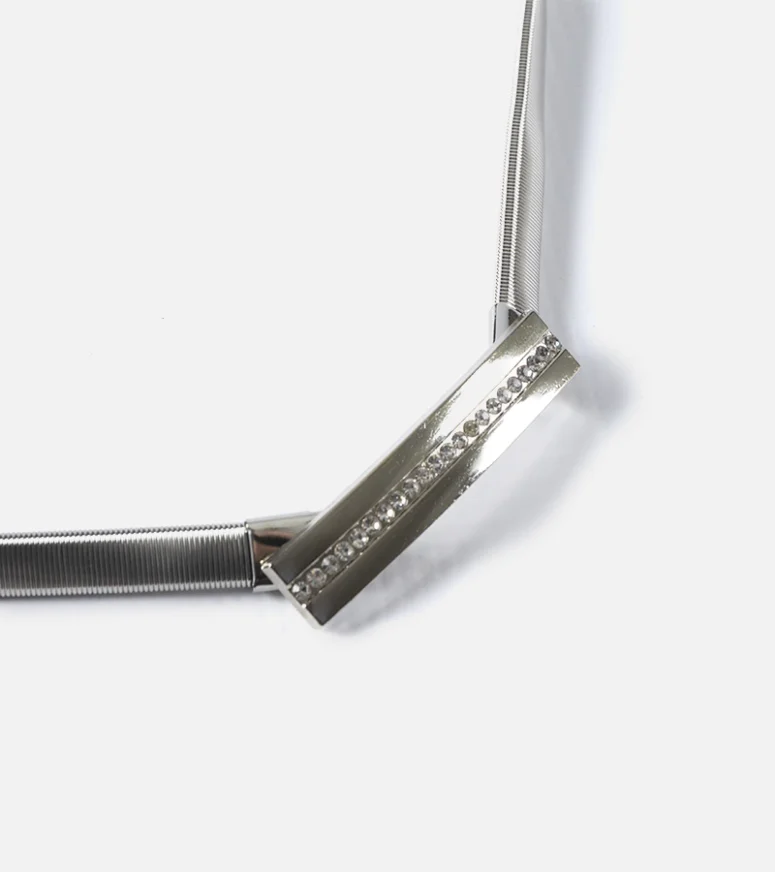 Słowa kluczowe „chic” i „modernistyczne” doskonale opisują ten pasek. Jego minimalistyczny design i błyszczące cyrkonie nadają mu nowoczesnego charakteru, który świetnie komponuje się zarówno z casualowymi, jak i bardziej formalnymi stylizacjami.