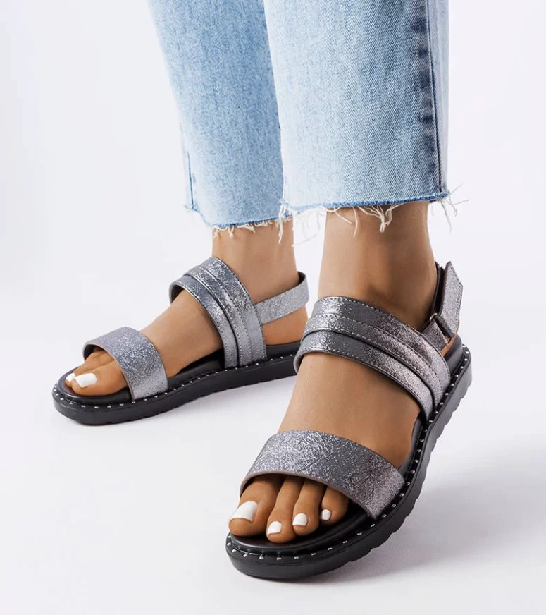 Szare błyszczące sandały Felicienne to idealny wybór dla młodego pokolenia, które kieruje się trendami. Ich krój jest uniwersalny i pasuje do wielu stylizacji, a jednocześnie są tanie i dostępne dla każdej kieszeni. To letnie obuwie, które sprawdzi się na gorące dni, zapewniając stopom odpowiednią wentylację. Sandały są wykonane z eko-skóry oraz gumy, co gwarantuje ich trwałość i wygodę użytkowania. Dodatkowo posiadają platformę, która podnosi je o kilka centymetrów, co dodaje kobiecego uroku. Sandały Felicienne to damskie buty na rzepy, dzięki czemu łatwo dopasują się do stopy. To klasyczny model, który nigdy nie wychodzi z mody i z pewnością będzie prezentował się świetnie na Twoich stopach!