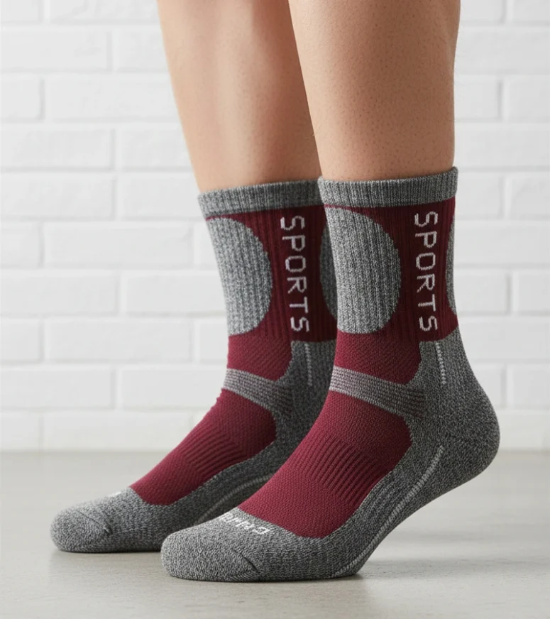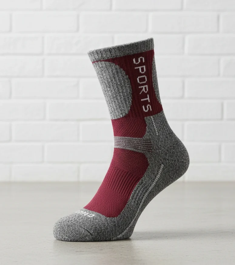 Szare ciepłe skarpetki z bordowym akcentem Siera