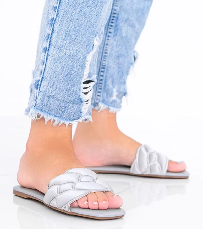 Przedstawiamy stylowe klapeczki Stormi. Ich głównym atutem jest pięknie zdobiona cholewka z błyszczącymi wstawkami. Idealnie uzupełnią twoją letnią garderobę 😉 Miękka wkładka zapewni wygodę podczas noszenia. Ciekawym akcentem jest lekko kwadratowy nosek. Numeracja zaniżona, sugerujemy wybrać rozmiar większe.