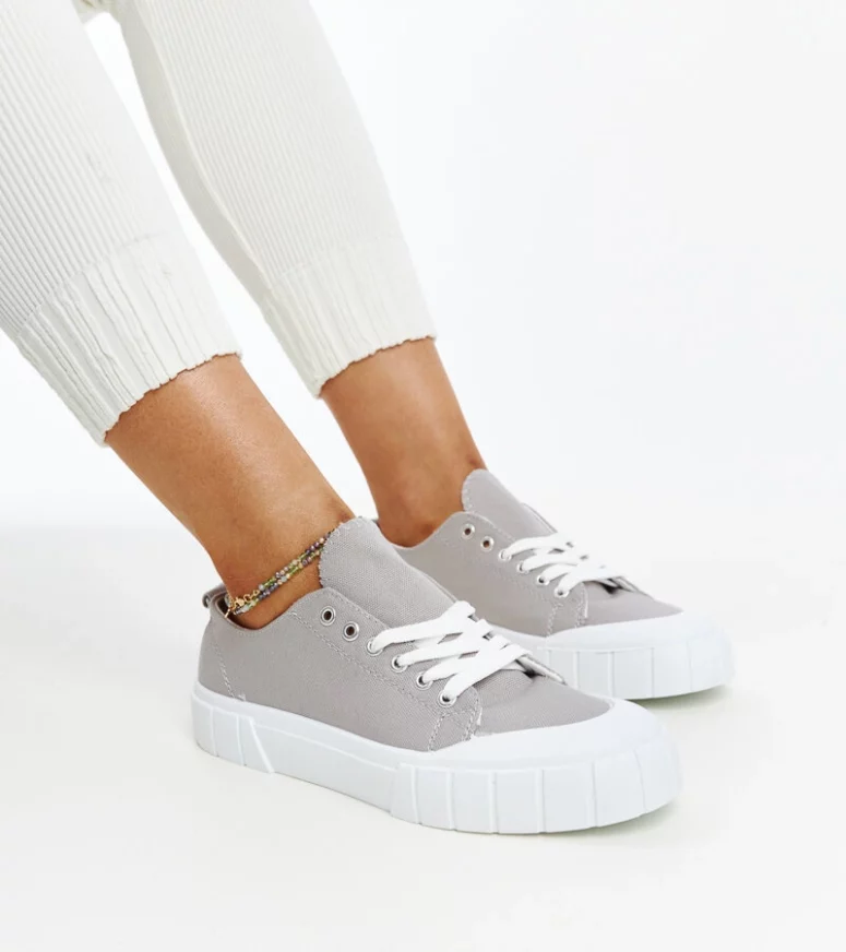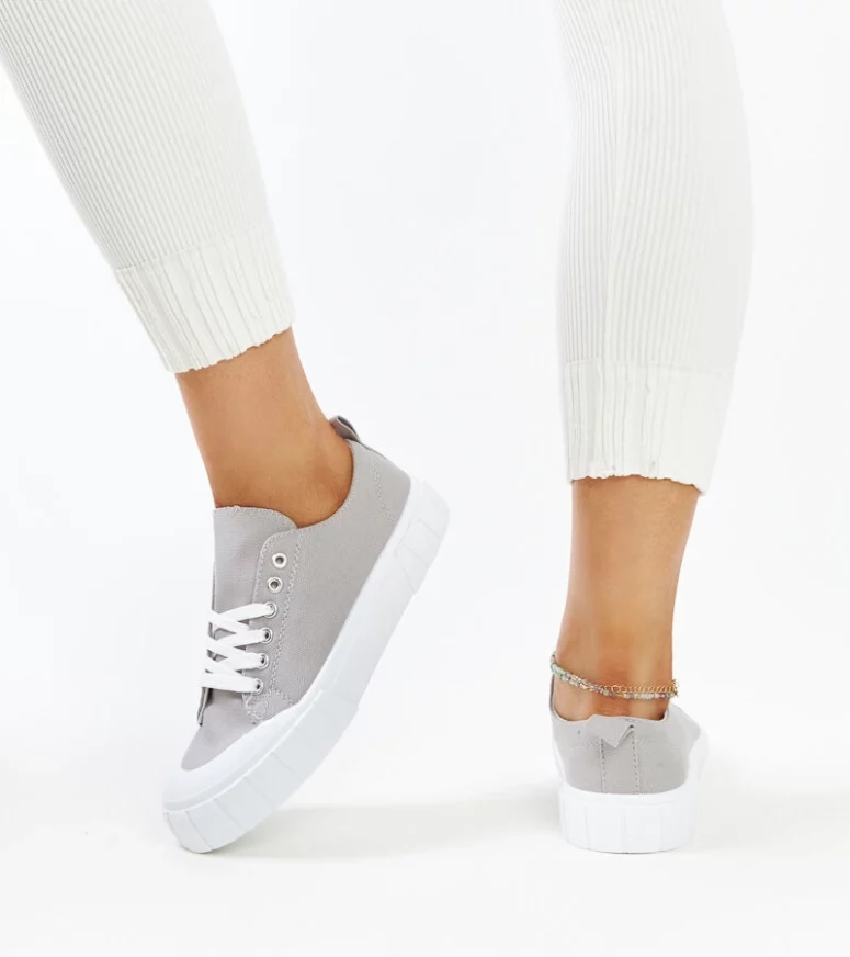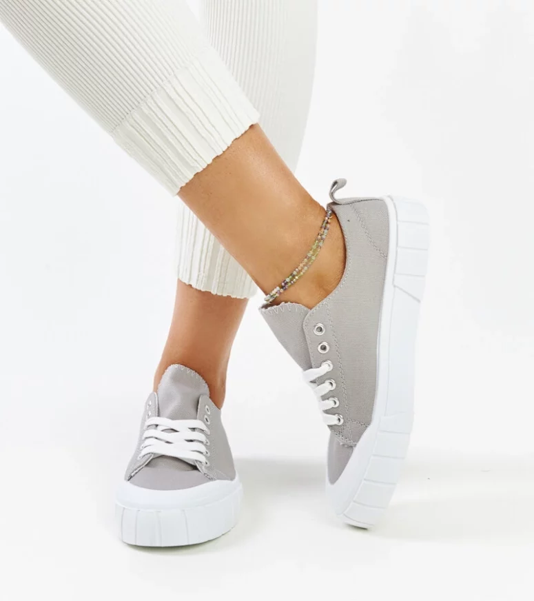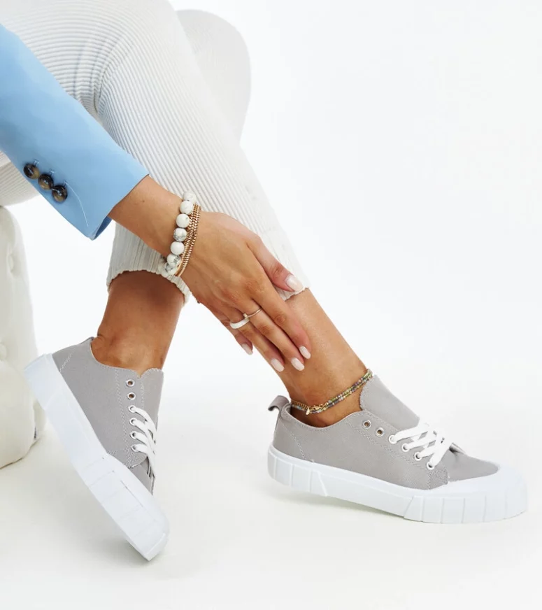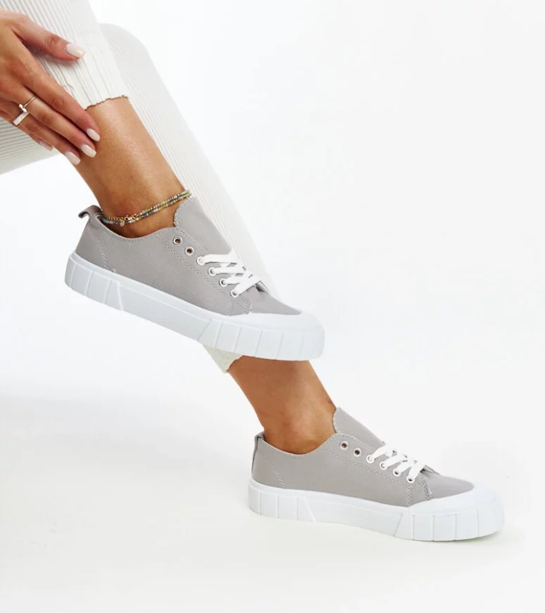 Szare materiałowe trampki Eduarda to idealny wybór dla każdej fasionistki, która ceni sobie elegancję i wygodę. Wykonane z wysokiej jakości materiału, posiadają okrągły nosek oraz niską cholewkę, co sprawia, że są nie tylko stylowe, ale także bardzo komfortowe. Dodatkowo, dzięki gumowej podeszwie zapewniają stabilność i pewność kroków. Trampki te są sznurowane, co dodaje im sportowego charakteru i pozwala na idealne dopasowanie do stopy. Idealne obuwie dla kobiet, które chcą być modnie ubrane, nie rezygnując przy tym z wygody.