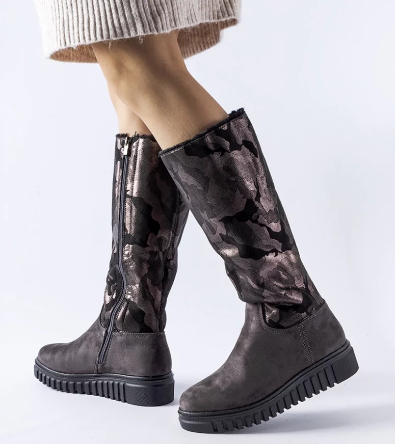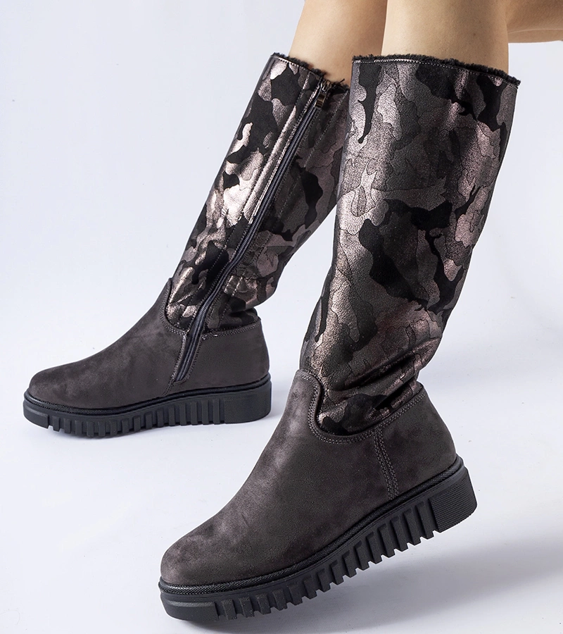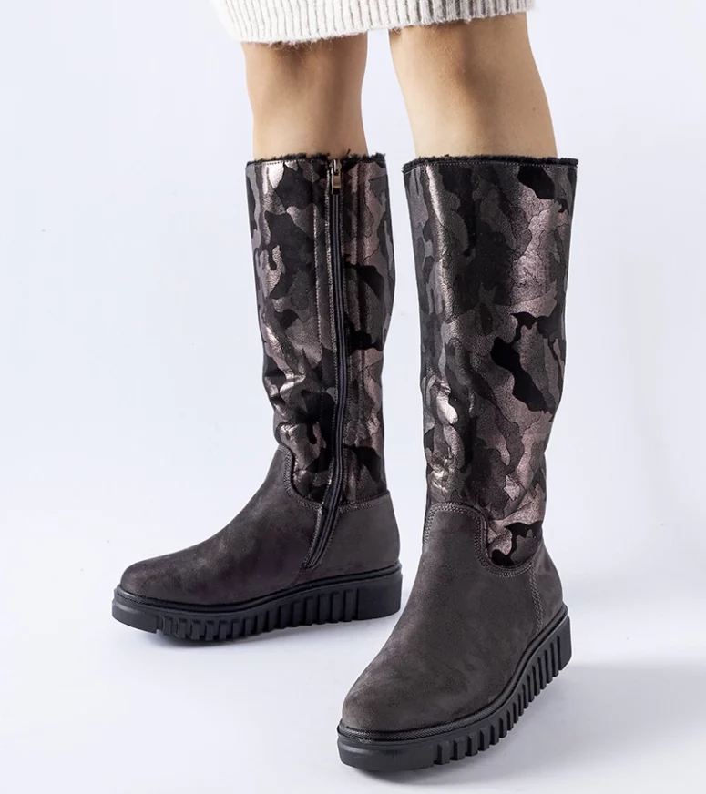 Kozaki Piazzola na zamek są praktyczne i łatwe do założenia, co jest szczególnie ważne w pośpiechu. Nie tylko utrzymują stopy w cieple, ale również prezentują się stylowo i modne. Ich design jest zarówno klasyczny, jak i na czasie, dzięki czemu doskonale pasują do różnych stylizacji. Dodatkowo, kozaki te posiadają platformę, która zapewnia dodatkową stabilność podczas chodzenia. Ich wysokość za kostkę chroni przed wiatrem i chłodem, a jednocześnie nadaje im elegancji. W skrócie, szare ocieplane kozaki moro eko-zamsz Piazzola to kombinacja funkcjonalności, komfortu i modnego designu, które będą idealnym uzupełnieniem garderoby każdego młodego człowieka w sezonie zimowym.