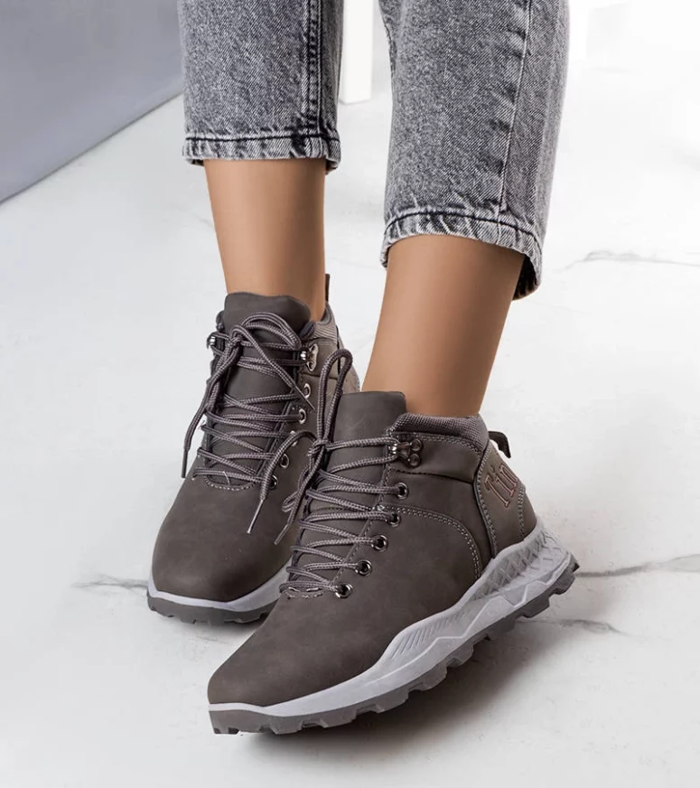 Szare ocieplane traperki damskie Adleri
