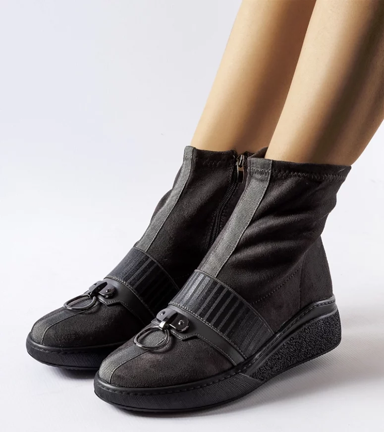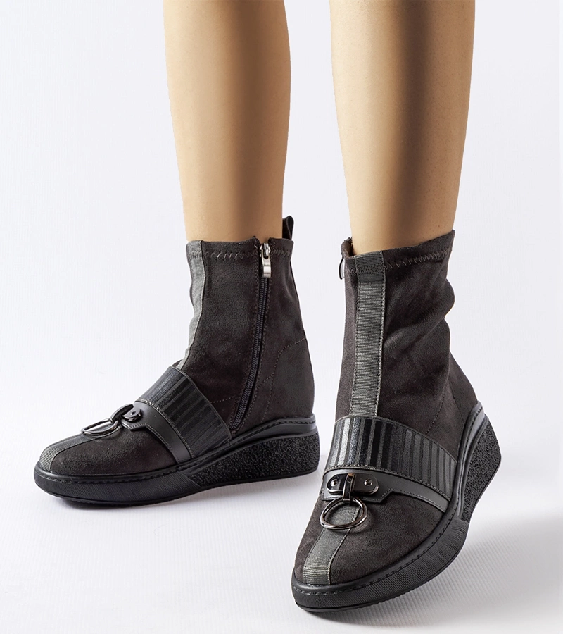 Wykonane z wysokiej jakości gumy, te botki sięgają wysoko za kostkę, dzięki czemu optycznie wydłużają nogi i dodają smukłości sylwetce. Ich okrągły nosek jest nie tylko modny, ale także zapewnia wygodne dopasowanie do kształtu stopy. Te eleganckie botki na koturnie Colonnata w szarym kolorze to must-have dla wszystkich, którzy cenią sobie styl, funkcjonalność oraz doskonałe wykonanie. Idealnie pasują zarówno do casualowych, jak i bardziej formalnych stylizacji, dodając im odrobinę nowoczesnego i oryginalnego charakteru. Bądź trendy i wybierz te innowacyjne botki, które połączą Twoje ulubione cechy w jednym produkcie.