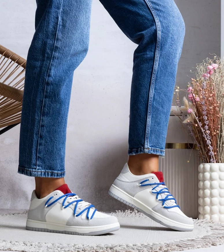 Szare sneakersy z granatowymi sznurówkami to nie tylko obuwie, ale także wyraz Twojego indywidualnego stylu. Ich neutralna kolorystyka sprawia, że łatwo dopasujesz je do różnych stylizacji, od casualowych po bardziej eleganckie. Granatowe sznurówki dodają charakteru i sprawiają, że buty wyróżniają się na tle innych modeli.