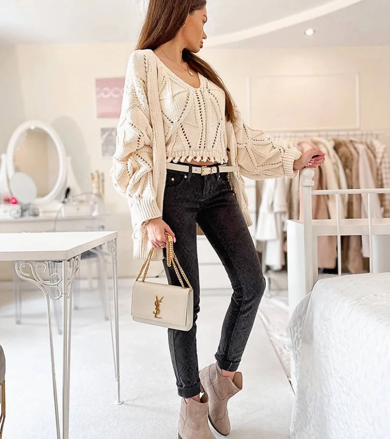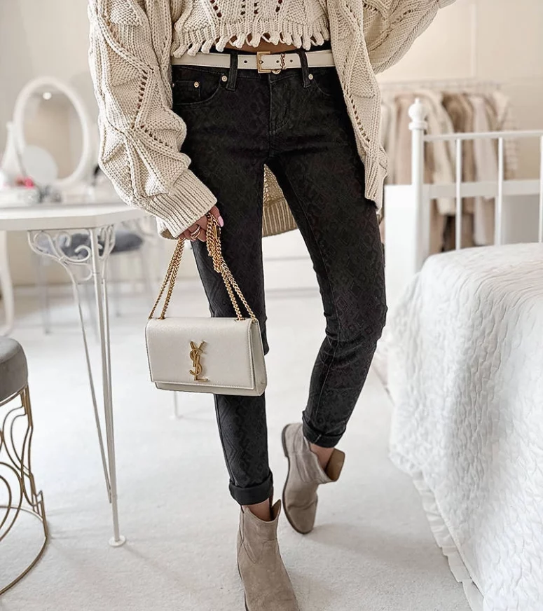 Spodnie Chevrette ze zwężaną nogawką. Straight ze szlufkami. Zapinane na suwak i guzik. Wsuwanie kieszenie na wysokości bioder. Pokryte modnym wzorem geometrycznym. Modne spodnie, które wystylizujesz na wiele sposobów! Pasują zarówno do marynarki, kurtki jeansowej, jaki ramoneski. Podczas wyboru prosimy sugerować się tabelą rozmiarów.