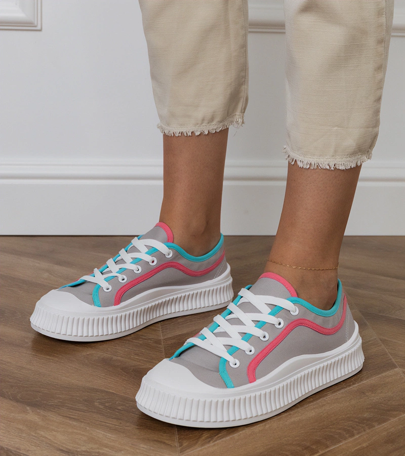Szare trampki damskie na platformie Salis marki Gemre to propozycja dla kobiet, które cenią wygodę, modny wygląd i uniwersalny charakter obuwia. Klasyczna, stonowana kolorystyka w odcieniu szarości sprawia, że buty doskonale dopasowują się do wielu stylizacji – od codziennych, miejskich zestawów po bardziej sportowe połączenia. Dzięki podwyższonej podeszwie te trampki damskie na platformie optycznie wysmuklają sylwetkę, jednocześnie zapewniając stabilność oraz komfort użytkowania przez cały dzień.