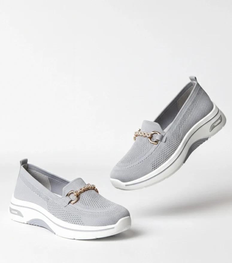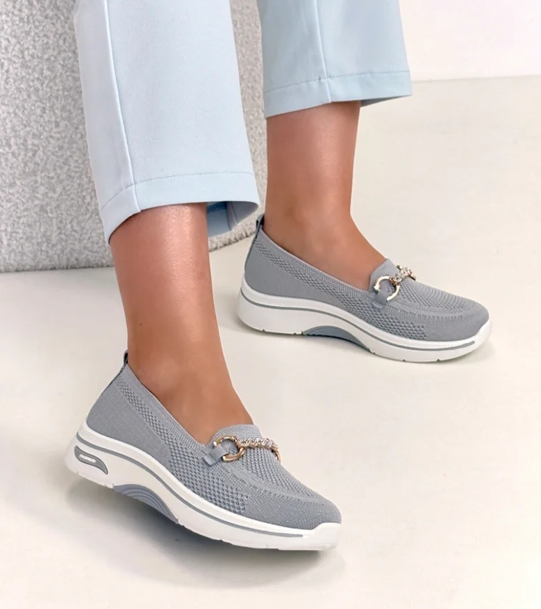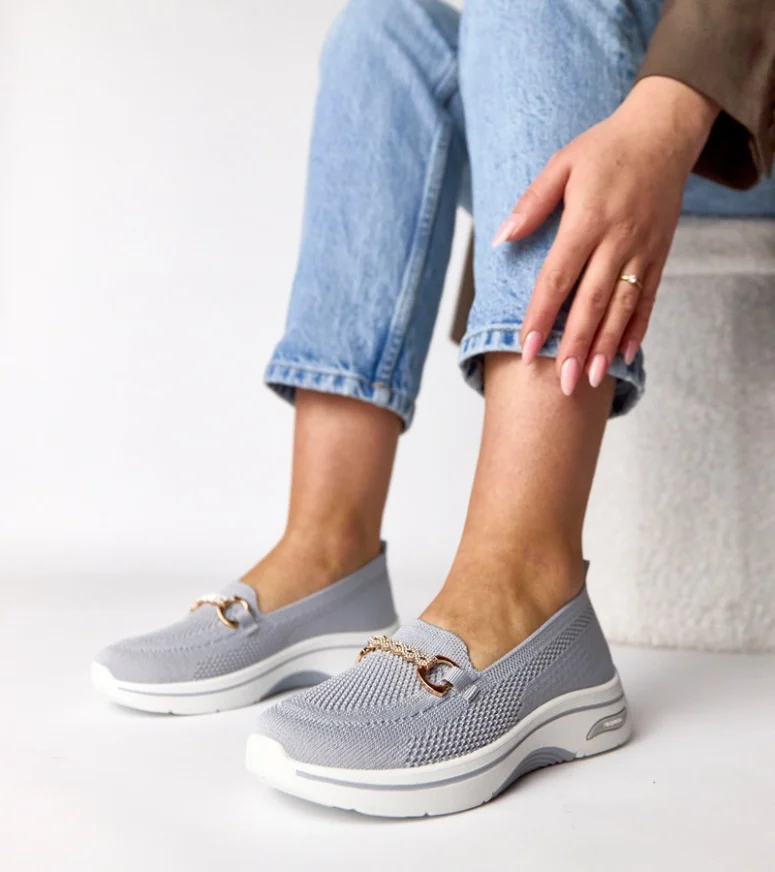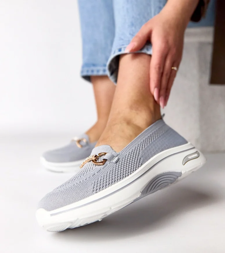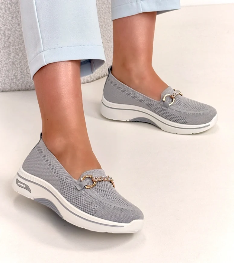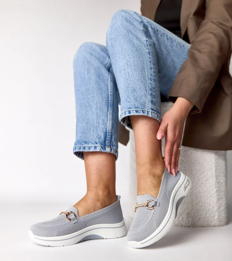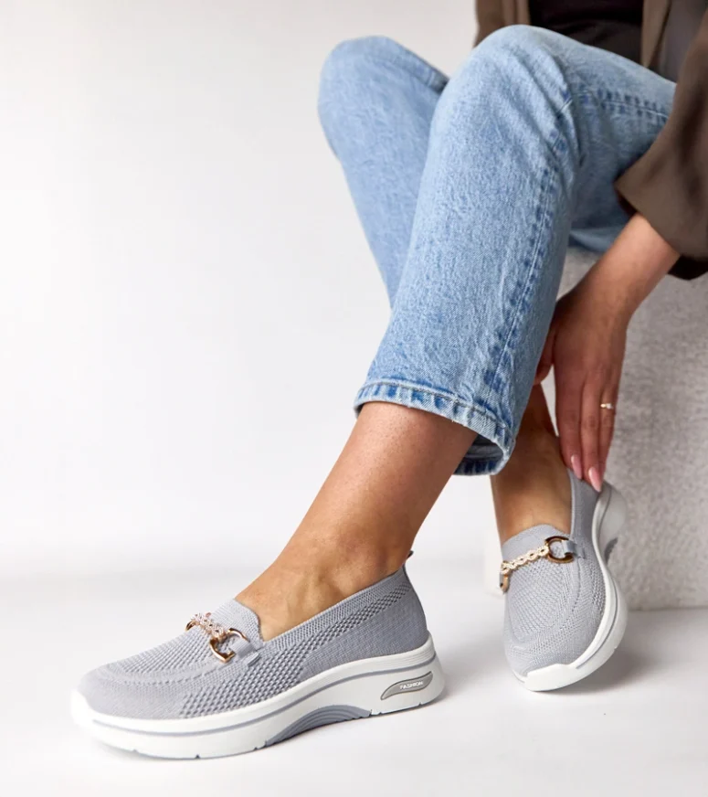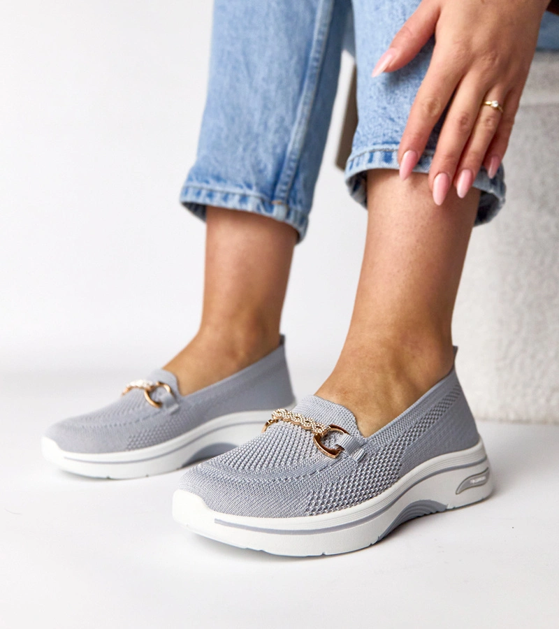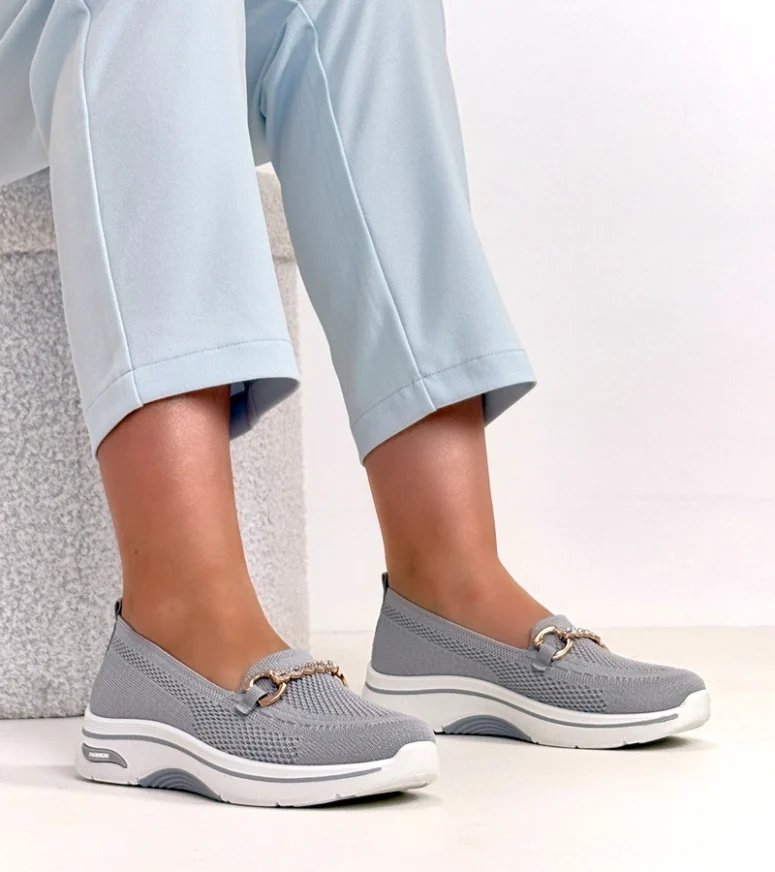 Szare wsuwane materiałowe tenisówki z cyrkoniami Gisele