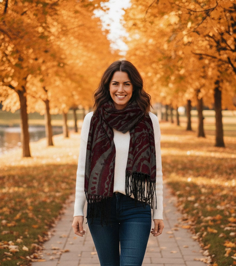 Szycie tego szala odbyło się z największą starannością, gwarantując trwałość i solidność produktu. Kwiatowe wzory nadają mu elegancji i subtelnego uroku, który pasuje zarówno do codziennych, jak i bardziej formalnych stylizacji. Ten szalik jest absolutnym hitem sezonu – jego szaro-bordowy kolor sprawia, że jest doskonałym akcentem, który doda klasy każdemu strojowi. Nie tylko utrzymuje Cię w cieple, ale również dodaje szczyptę chic do Twojego outfitu. Nie przegap okazji, aby mieć ten sztosowy szalik w swojej kolekcji! Jest idealnym wyborem dla tych, którzy cenią sobie wysoką jakość, unikalny design i praktyczność. Dodaj trochę koloru i stylu do swoich zimowych zestawów dzięki naszemu szaro-bordowemu szalikowi w kwiaty Colonie.
