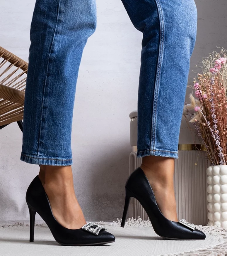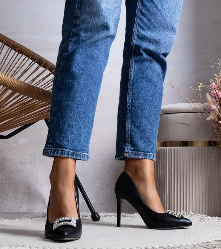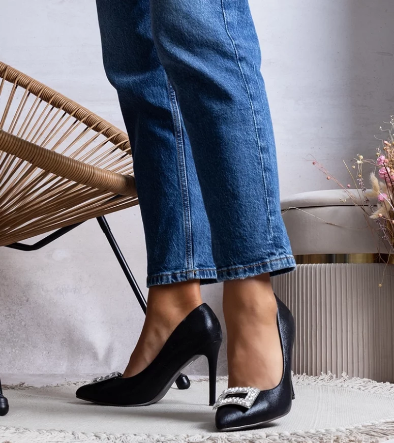 Szpilki Tyson ze szpiczastym noskiem. Wsuwane, wysokie. Wykonane z tkaniny o błyszczącym wykończeniu, wkładka z ekoskóry. Leżą dobrze na wąskiej stopie. Koniecznie zestaw je z koktajlową sukienką i kopertówką. Numeracja standardowa, prosimy kierować się przy wyborze swoim rozmiarem.
