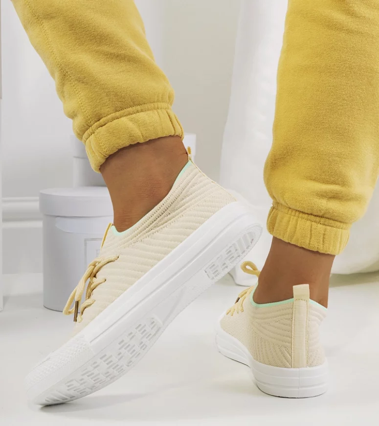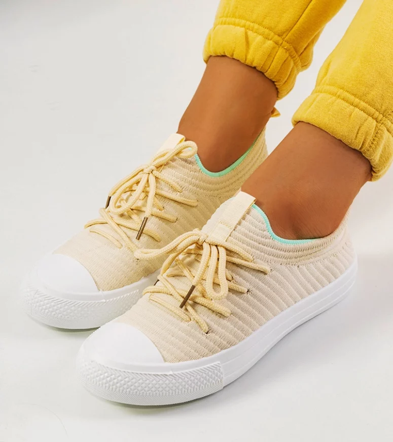 Tenisówki damskie beżowe sznurowa materiałowe lekkie Medina