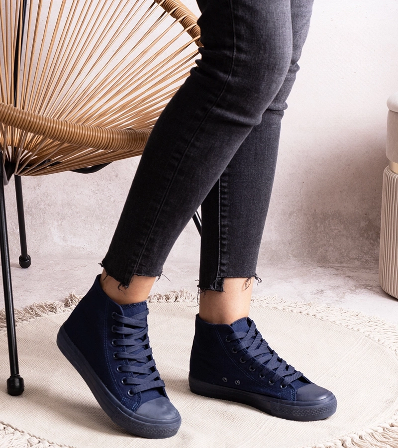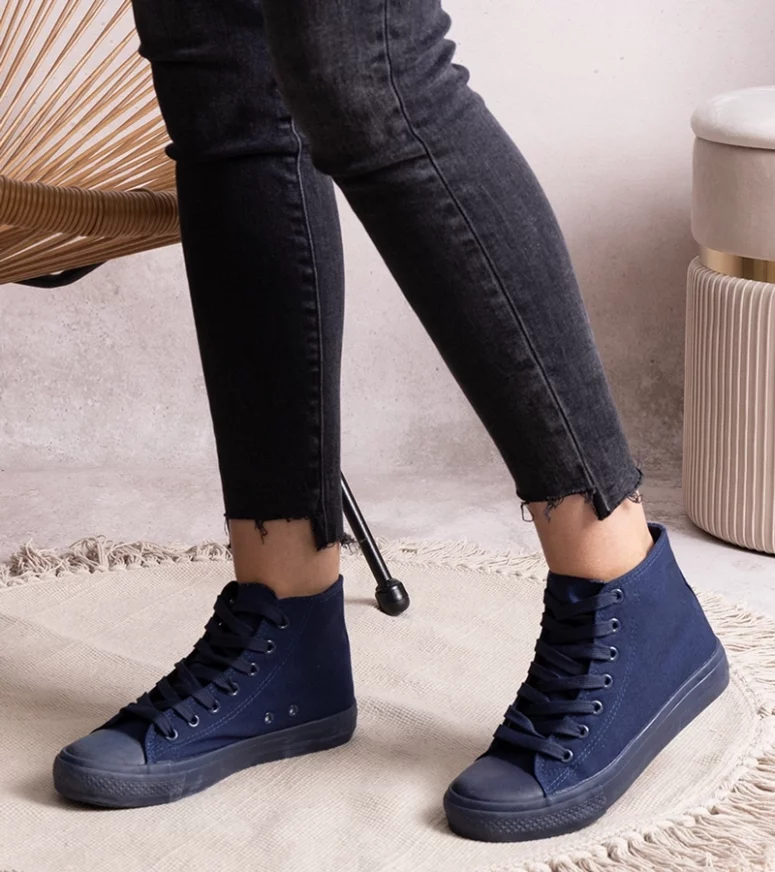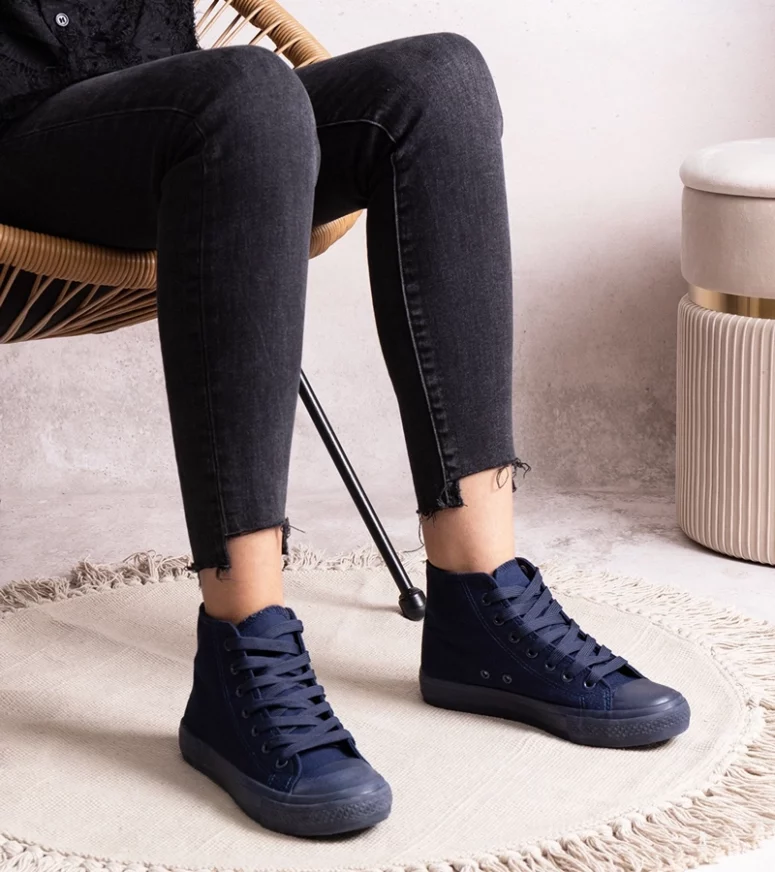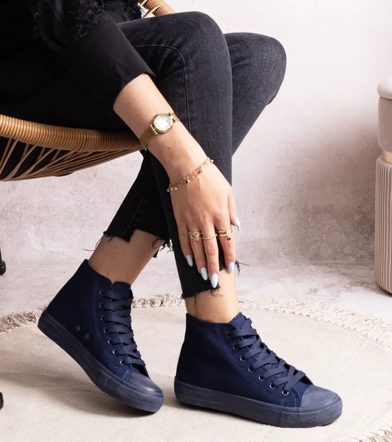 Granatowe wysokie trampki Rafife to idealne połączenie stylu i wygody. Sznurowane z gumową podeszwą zapewniają stabilność i komfort podczas noszenia. Ich okrągły nosek dodaje im elegancji, sprawiając że są popularnym wyborem wśród miłośników mody. Te chic i eleganckie trampki doskonale sprawdzą się zarówno na co dzień, jak i na specjalne okazje, dodając każdej stylizacji niepowtarzalnego charakteru.