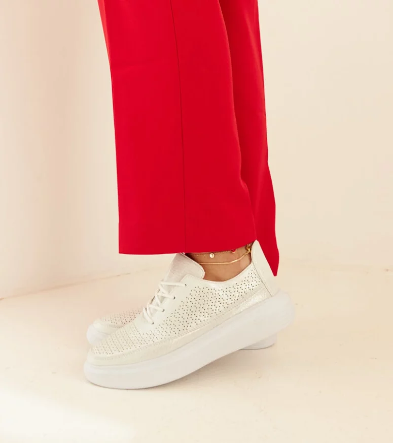 Trampki damskie srebrne na platformie sznurowane ażurowe Lori