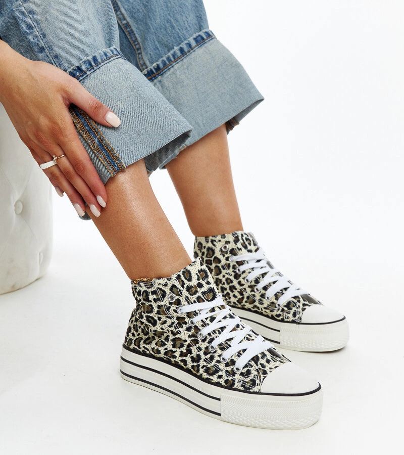 Wysokie trampki w panterkę na grubej podeszwie Bagy platflorma
