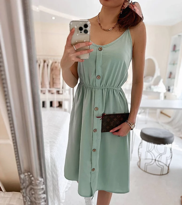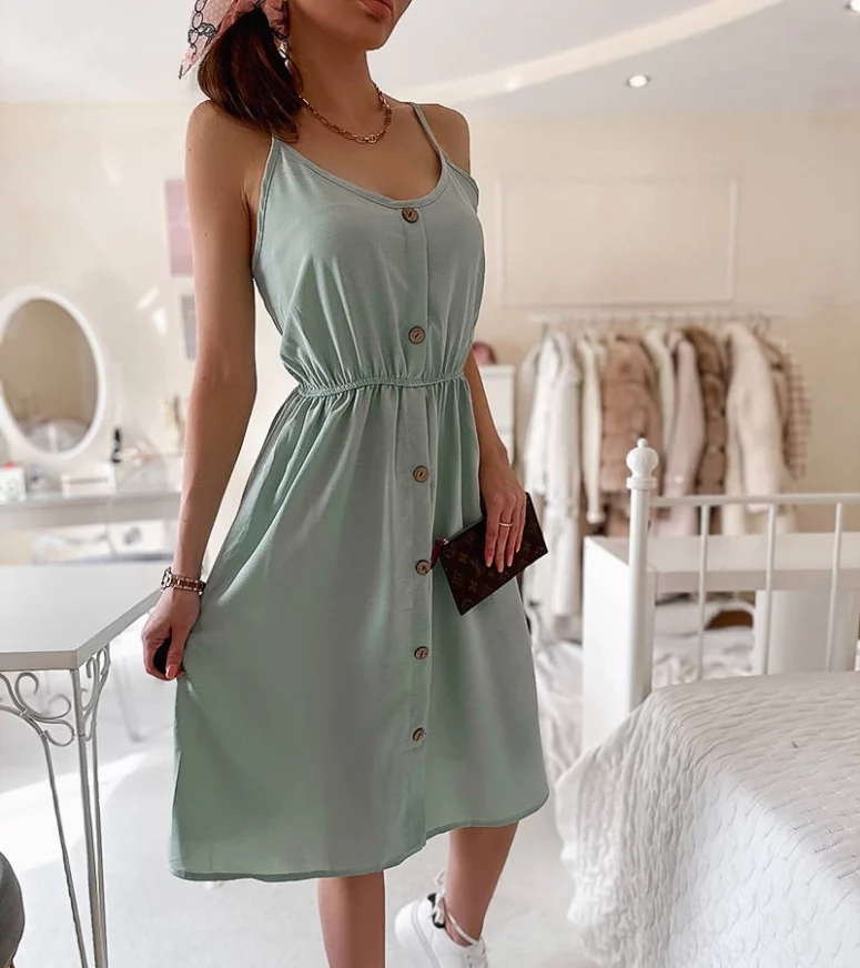 Zielona sukienka na ramiączkach Aubin