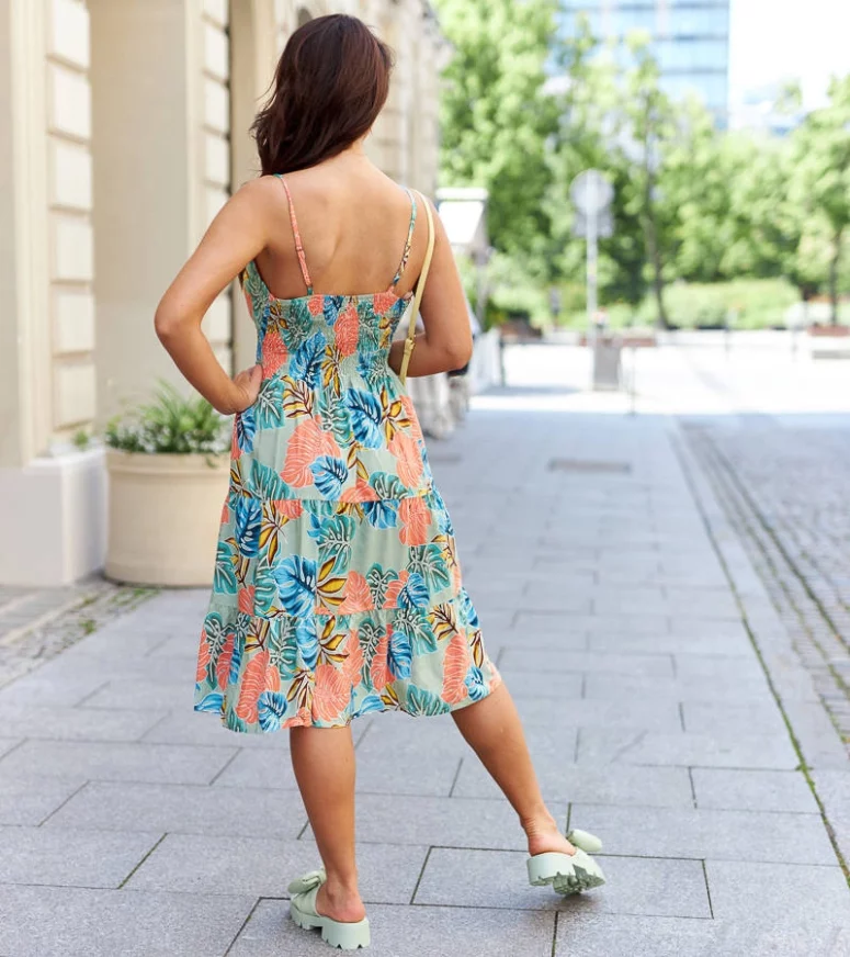 Zielona sukienka na ramiączkach Pontiere marki Gemre to propozycja dla kobiet, które cenią sobie połączenie wygody, elegancji i modnego wyglądu na co dzień. Ta stylowa zielona sukienka z cienkimi ramiączkami doskonale podkreśla sylwetkę, a jednocześnie zapewnia swobodę ruchów i komfort noszenia przez cały dzień. Idealna jako sukienka na lato, sprawdzi się zarówno podczas spaceru po mieście, wyjścia z przyjaciółmi, jak i na rodzinne spotkania czy wakacyjny wyjazd.