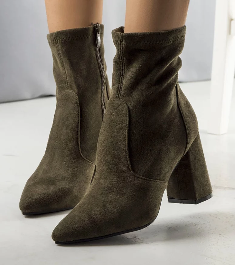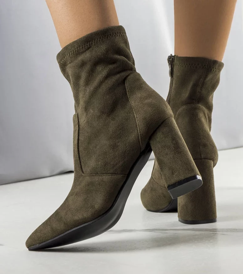 Zjawiskowy model Kensley z pewnością zachwyci wiele z nas. Wysoki obcas typu słupek idealnie dopełnia elegancki fason. Cholewka jest wykonana z wysokiej jakości skóry ekologicznej zamszowej. Nosek w szpic optycznie wyszczupli nogi a dopasowana cholewka na wysokim obcasie pięknie je podkreśli. Numeracja zaniżona, sugerujemy wybrać rozmiar większe.