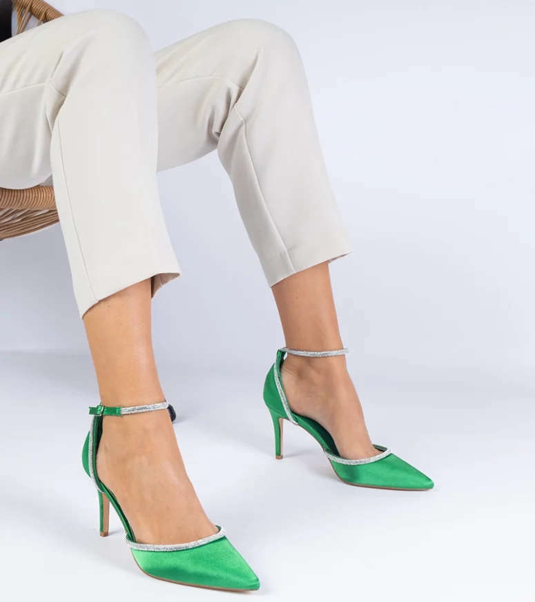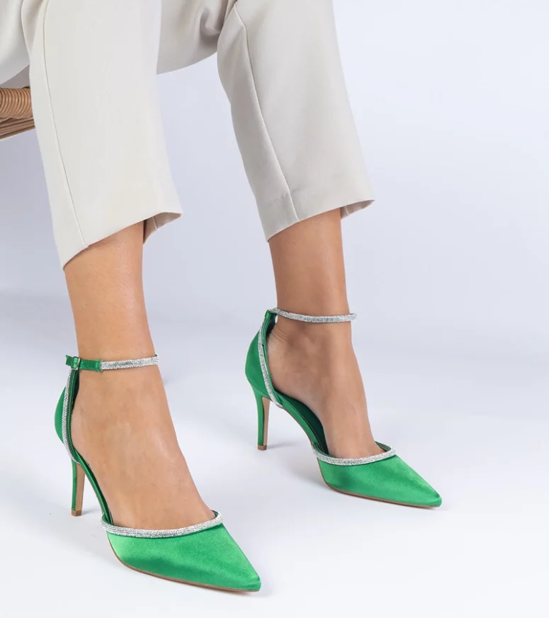 Zielone czółenka satynowe zdobione cyrkoniami Fugatto – Gemre