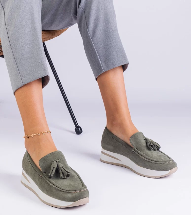 Zielone damskie mokasyny na platformie ze zdobieniem Selerina