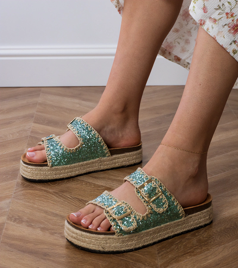Słowa kluczowe: zielone klapki, klapki espadryle, klapki brokatowe, klapki z klamerkami, Gemre klapki, klapki damskie, klapki na lato, modne klapki, klapki espadryle brokatowe, klapki Induri.