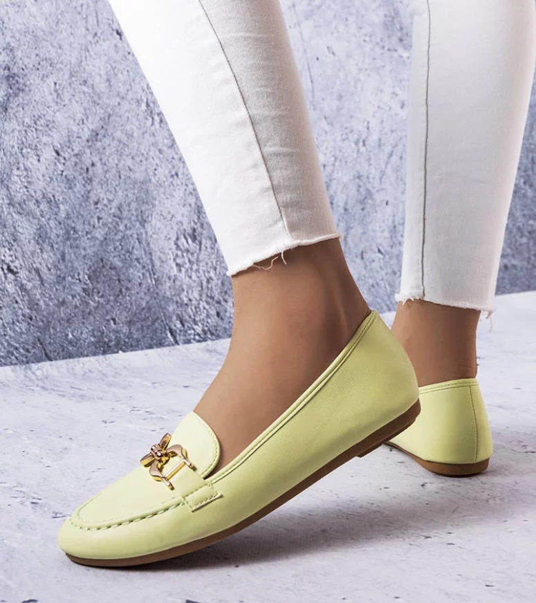 Mokasyny Sauvé na płaskiej podeszwie. Wsuwane, z noskiem o zaokrąglonej krawędzi. Dekorowane z przodu charakterystycznym, grubym przeszyciem w dopasowanym kolorze. Z przodu ozdobione dodatkowo błyszczącą aplikacją. Wykonane ze skóry ekologicznej. Wyścielone skóra ekologiczną, z wbudowaną miękką pianką. Uniwersalny kolor sprawia, że mokasyny będą pasowały do ubrań w każdym stylu i kolorze. Będą dobrze leżeć na wąskiej stopie. Numeracja zaniżona, sugerujemy wybrać o rozmiar większe.
