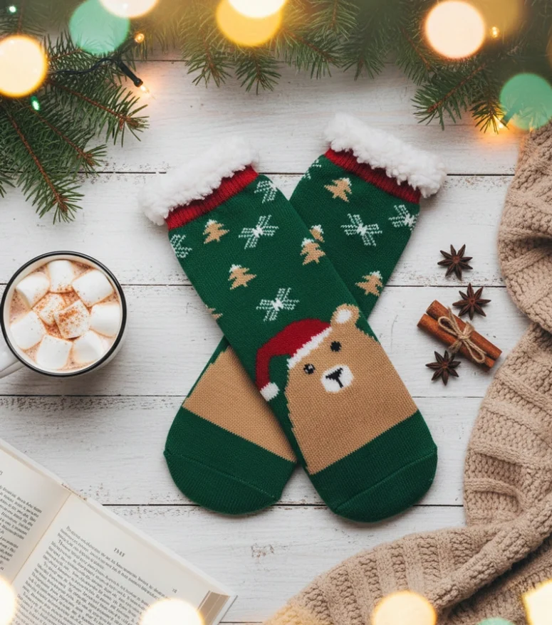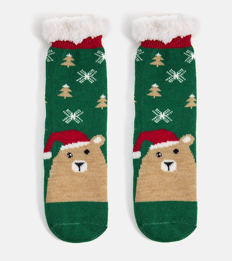 Skarpetki Challi będą idealnym towarzystwem na mroźne zimowe wieczory. Futerko jest bardzo ciepłe i przyjemne w dotyku. Spód ma antypoślizgowe elementy. Piękne świąteczne wzory sprawiają że będą one uroczym prezentem np. pod choinkę czy mikołajki 😉 Model przeznaczony do użytku domowego.