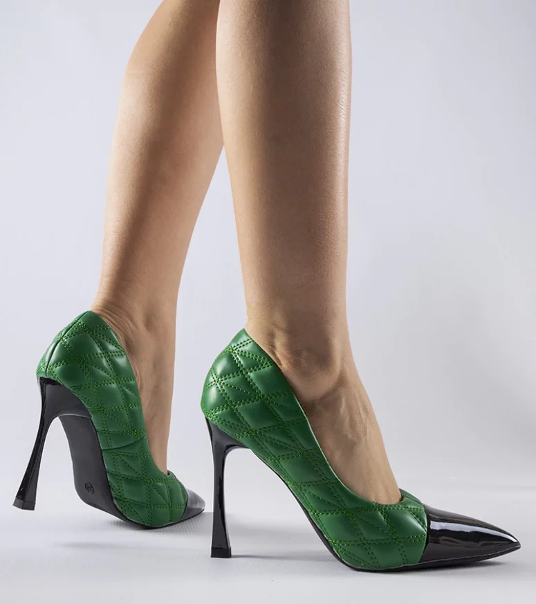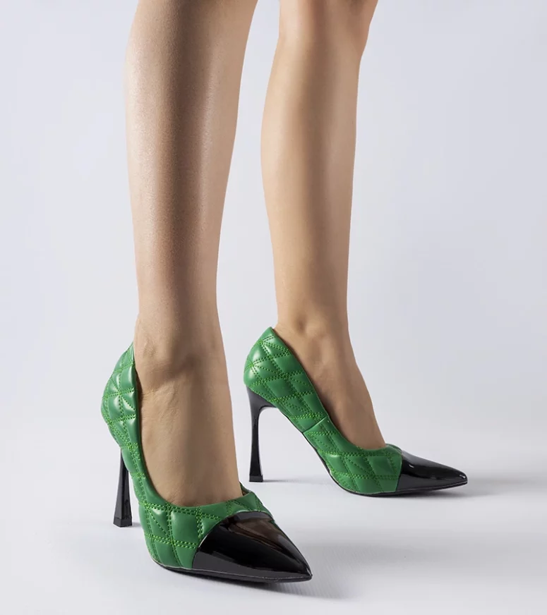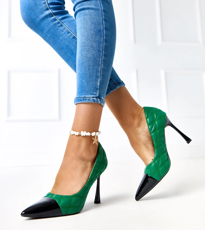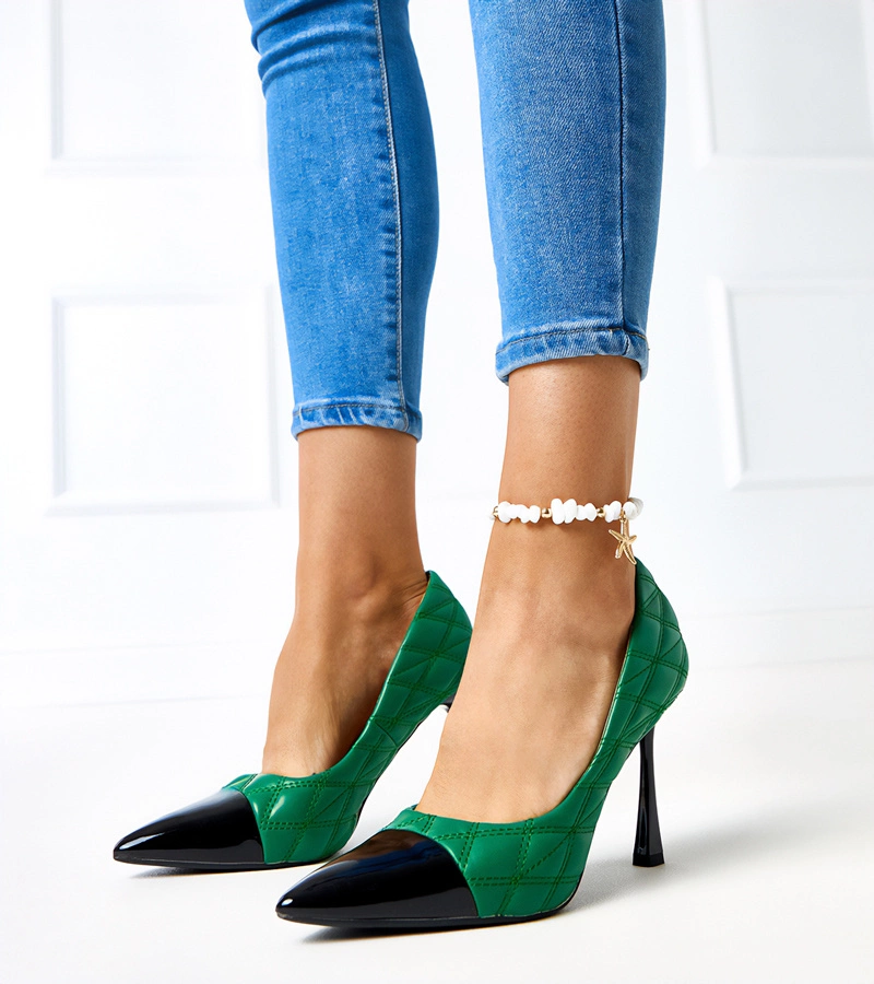 Zielone pikowane szpilki Benito są wyjątkowe i stylowe. Wykonane z tworzywa sztucznego, posiadają lakierowane wykończenie, które dodaje im elegancji. Mają wsuwane konstrukcję, co sprawia, że są łatwe do założenia i zdejmowania. Ich szpicowaty nosek nadaje im modny wygląd. Dodatkowo, są tanie i niedrogie, co czyni je idealnym wyborem dla osób poszukujących modnych butów w przystępnej cenie.