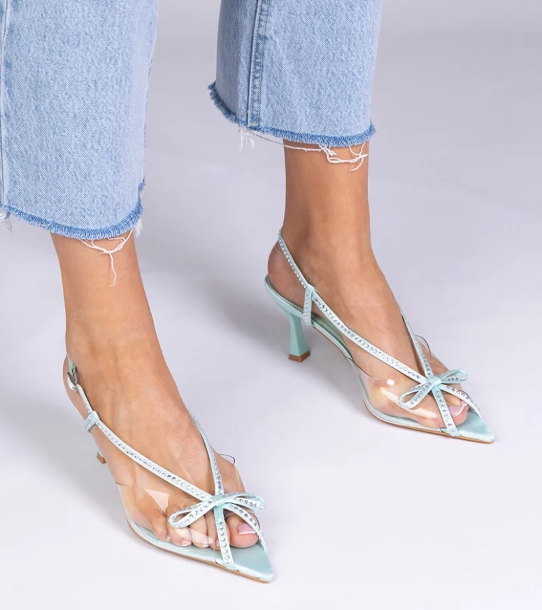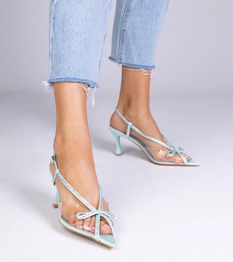 Wyróżniają się one nie tylko swoim unikalnym zielonym przezroczystym kolorem, ale także subtelnymi detalami w postaci połyskujących cyrkonii, które dodają blasku każdemu krokowi. Wysoka szpilka zapewnia elegancję, a jednocześnie podkreśla sylwetkę, dodając jej lekkości i wdzięku.