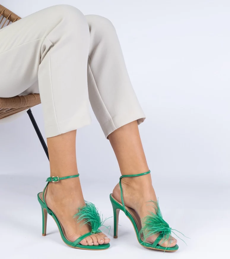 Wyróżnij się w tłumie dzięki unikalnym piórkom, które dodają niepowtarzalnego charakteru każdej stylizacji. Nasze zielone sandałki na szpilce doskonale sprawdzą się zarówno na eleganckie przyjęcia, jak i romantyczne wieczory. Ich głęboki zielony kolor w połączeniu z subtelnymi piórkami tworzy harmonijną całość, która przyciąga wzrok i zachwyca.
