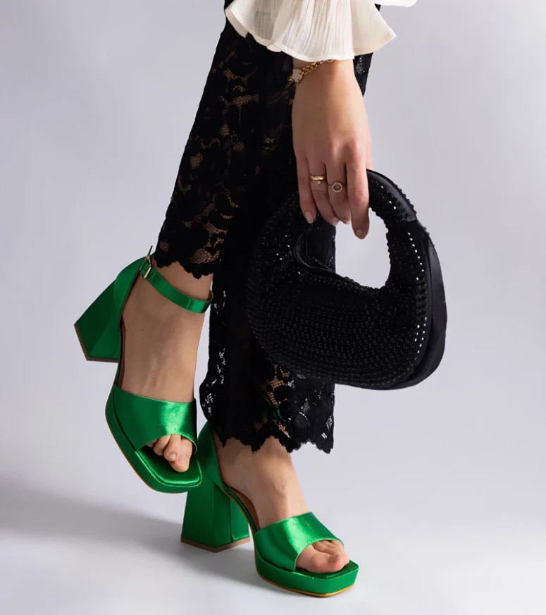 Zielone satynowe sandały na masywnym obcasie Saucedo to must-have dla każdej kobiety ceniącej sobie modę i wygodę. Ich uniwersalny kolor sprawia, że łatwo można je łączyć z różnorodnymi stylizacjami, dodając im wyjątkowego charakteru. Nie czekaj, dodaj te wyjątkowe sandały na słupku do swojej kolekcji i ciesz się niezrównanym stylem i komfortem, który oferują.