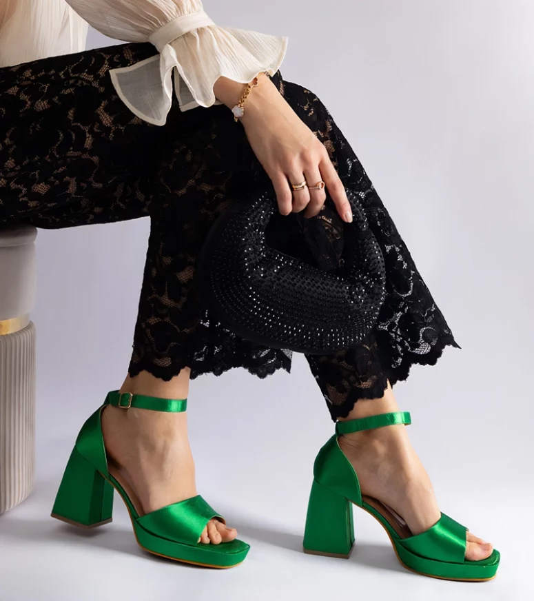 Te zielone sandały wyróżniają się eleganckim designem, który doskonale komponuje się z każdą letnią stylizacją. Satynowe wykończenie nadaje im subtelny połysk, który dodaje im luksusowego charakteru. Dzięki masywnemu obcasowi, te sandały na słupku zapewniają stabilność i komfort noszenia przez cały dzień, niezależnie od tego, czy spędzasz czas na spotkaniu biznesowym, czy na wieczornym wyjściu z przyjaciółmi.