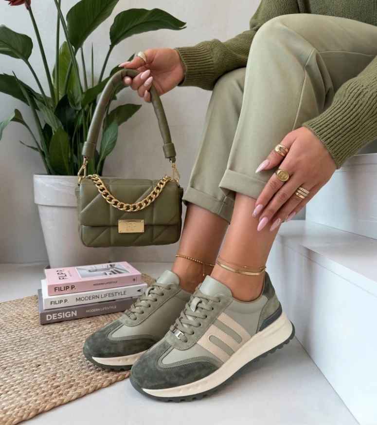 Zielone Skórzane Sneakersy Na Platformie Filippo