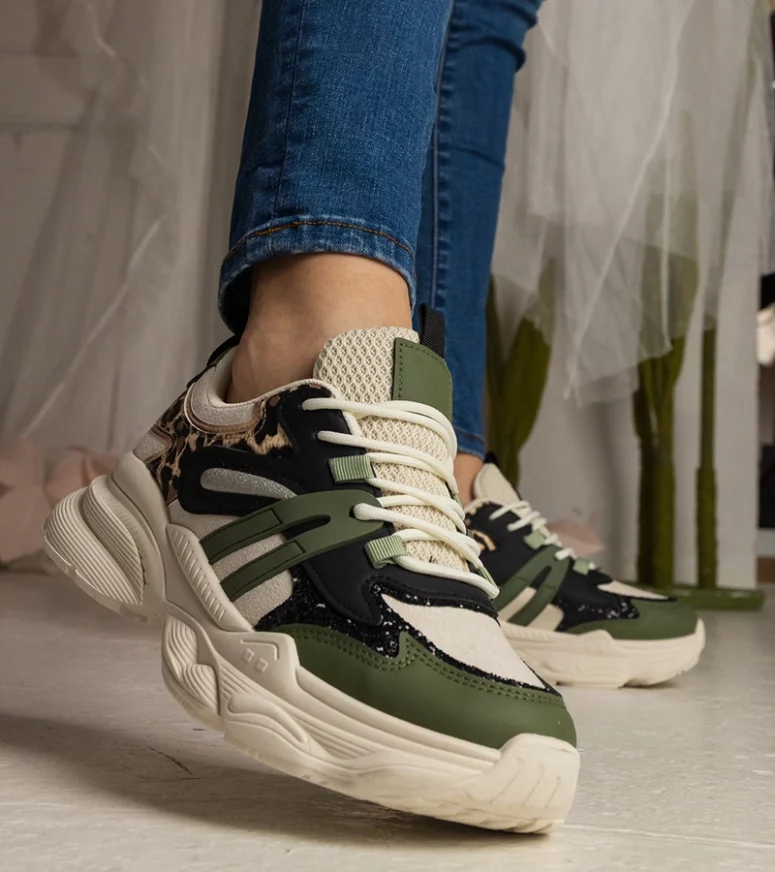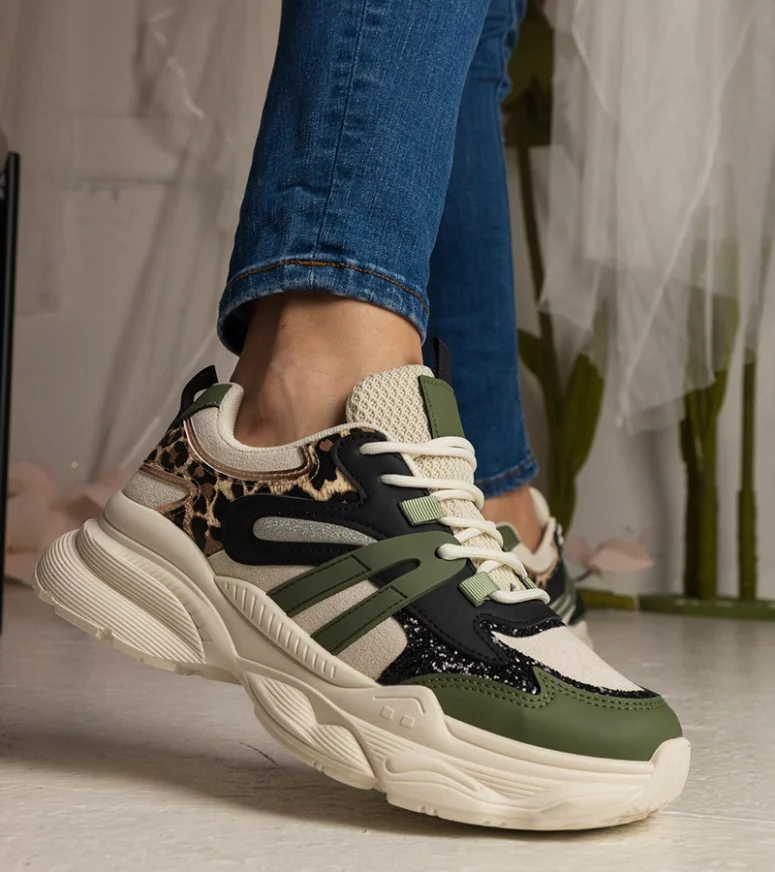 Model Maleda charakteryzuje się niepowtarzalnym zielonym kolorem, który przyciąga wzrok i dodaje energii każdej stylizacji. Brokatowe wykończenie dodaje butom blasku, dzięki czemu stają się one idealnym wyborem na wieczorne wyjścia, ale także na co dzień, kiedy chcesz dodać odrobinę błysku do swojego stroju. Sneakersy z brokatem to must-have w szafie każdej miłośniczki mody!