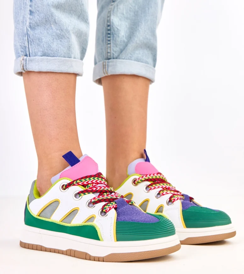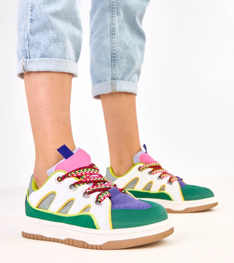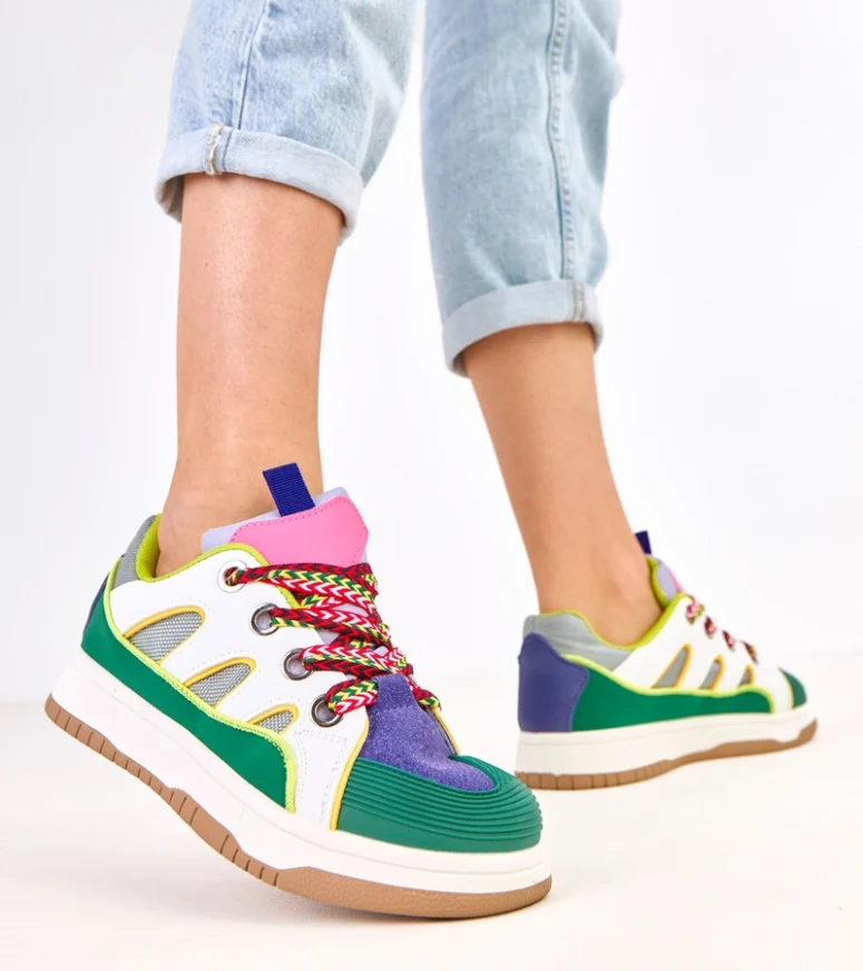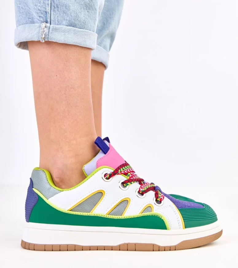Te sneakersy damskie stanowią znakomity wybór dla osób, które lubią bawić się modą i szukają dodatków podkreślających indywidualny styl. Zielone sneakersy z grubymi sznurówkami przyciągają uwagę, ale jednocześnie pozostają bardzo funkcjonalne. Antypoślizgowa podeszwa zapewnia dobrą przyczepność, a lekka konstrukcja sprawia, że stopa nie męczy się nawet po wielu godzinach chodzenia.