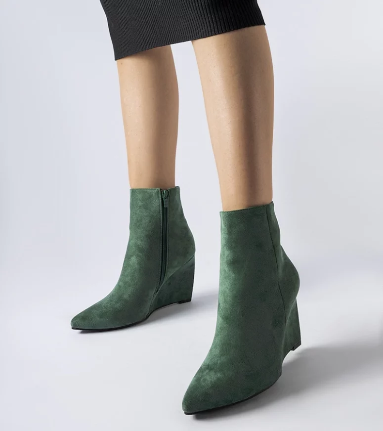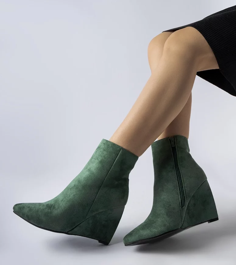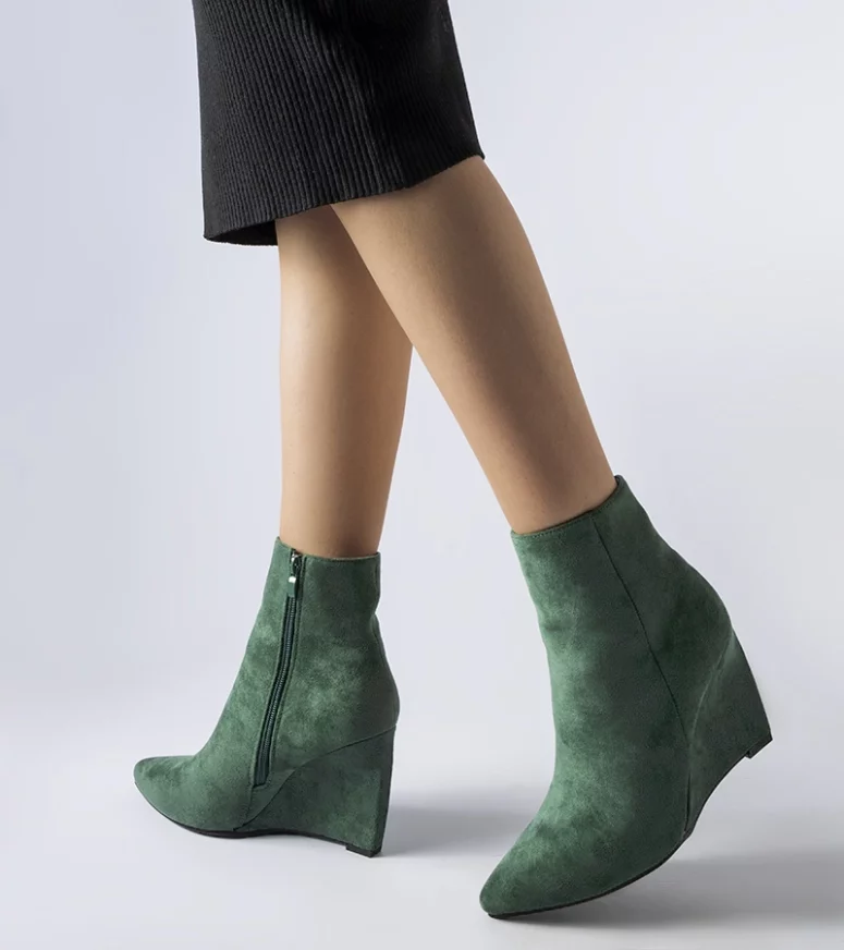 Zielone szpiczaste botki na koturnie Aprutino