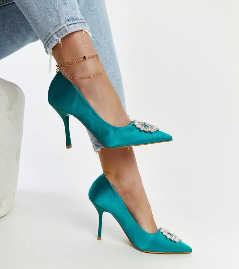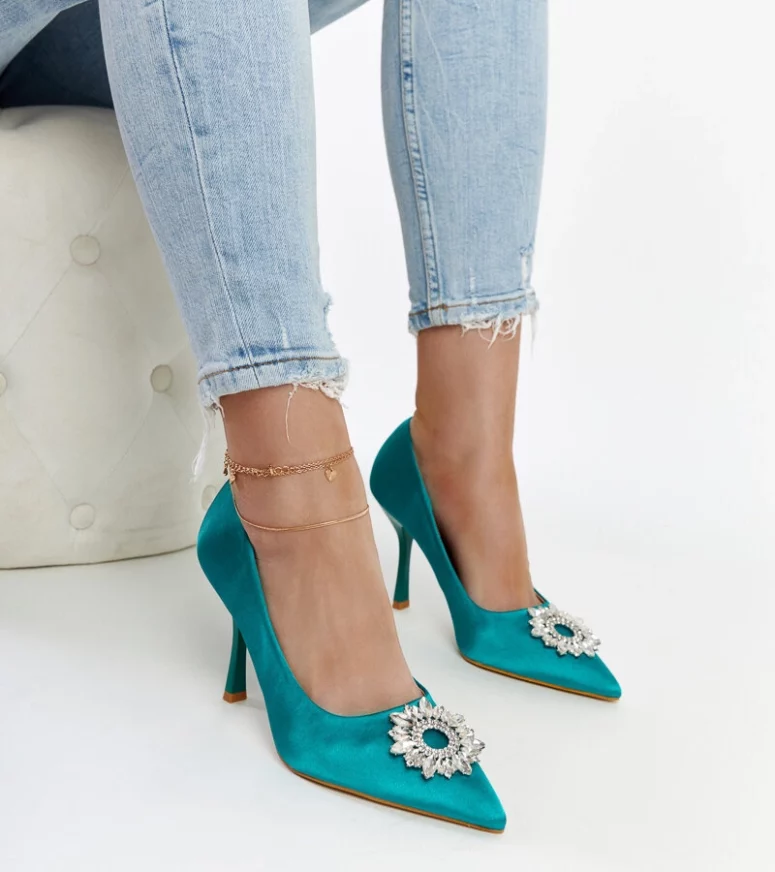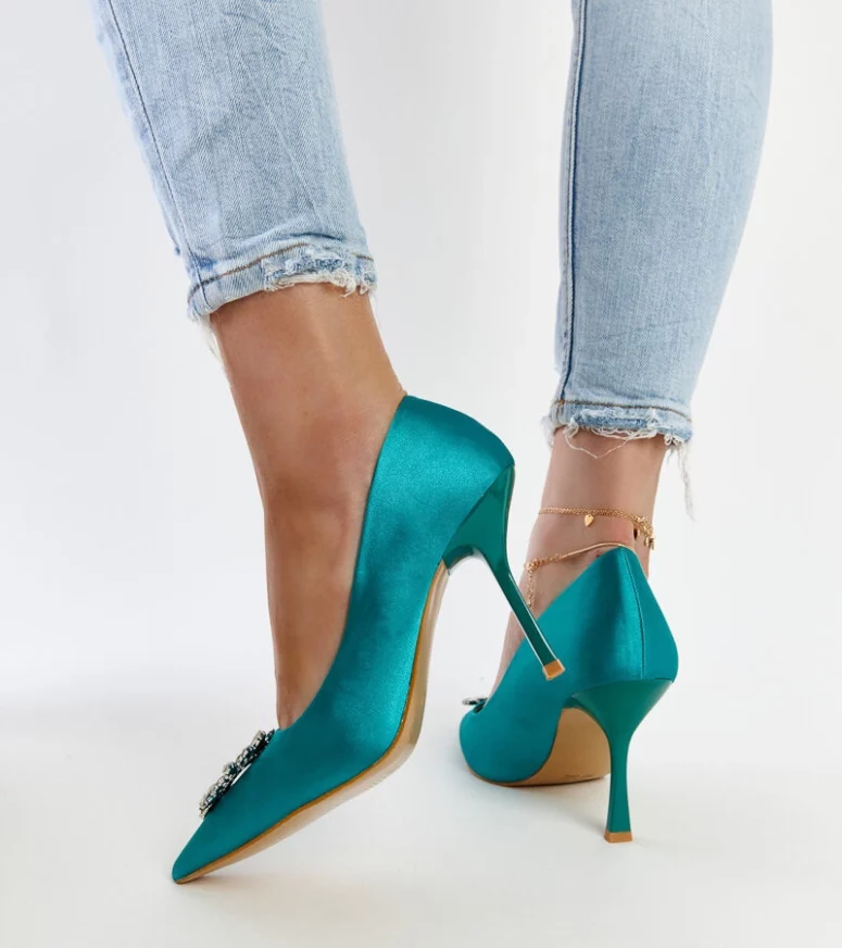 Zielone szpilki Susegana to idealny wybór na lato! Wykonane z tworzywa sztucznego, o satynowym wykończeniu i ozdobione cyrkoniami, są nie tylko na czasie, ale także bardzo eleganckie. Ich modernistyczny design z pewnością przyciągnie uwagę innych.