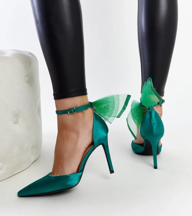 Zielone szpilki z kokardą Ilaysa to idealny wybór dla modnych fasionistek z młodego pokolenia. Wykonane z tworzywa sztucznego, posiadają szpicowaty nosek oraz ozdobną kokardkę na sprzączkę. Te eleganckie buty na szpilce dodadzą każdej stylizacji odrobinę uroku i klasy. Idealne zarówno na wieczorne wyjścia, jak i na codzienne spotkania ze znajomymi. Bądź trendy i postaw na unikalny design!