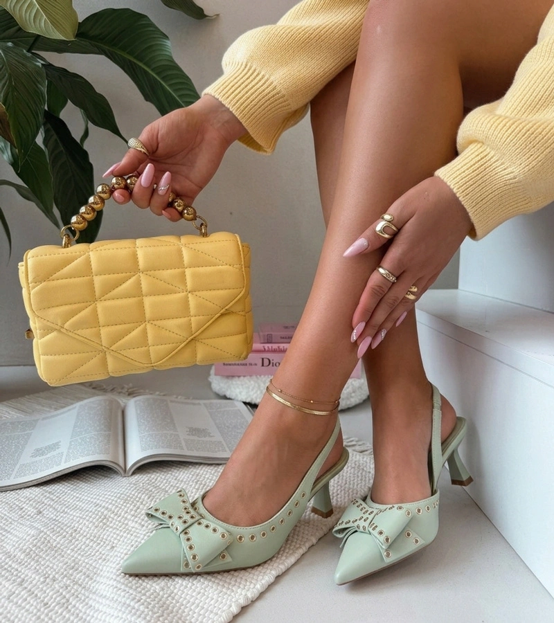 Zielone Szpilki Z Odkrytą Pięta Zdobione Kokardą Evangeline