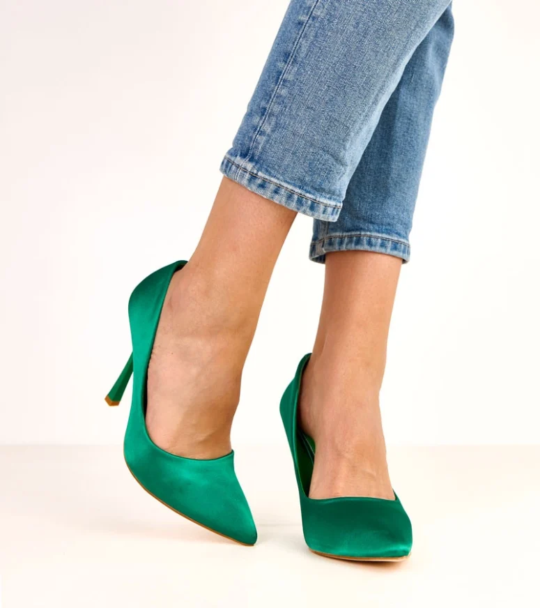 Szpilki z satynowym wykończeniem Cindy idealnie dopełnią stylizacje wieczorowe i koktajlowe. Możesz zestawić je z klasyczną małą czarną, szykowną sukienką maxi lub modnym garniturem, tworząc spójny i stylowy outfit. Wyjątkowy, zielony odcień świetnie prezentuje się w połączeniu z czernią, beżem, złotem czy bielą, dzięki czemu buty te staną się uniwersalnym elementem Twojej garderoby. To doskonały wybór do stylizacji na święta, studniówkę, sylwestra, randkę lub ważne wyjścia, gdzie chcesz zrobić niezapomniane wrażenie.