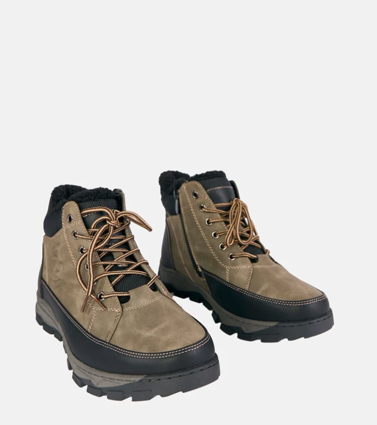 Model Zielone trapery męskie ocieplane Elias wyróżnia się stylowym, głębokim odcieniem zieleni, który świetnie komponuje się z jesienno-zimową garderobą. Cholewka została wykonana z wysokiej jakości materiałów, które są łatwe w czyszczeniu i odporne na codzienne użytkowanie. Dzięki temu te męskie trapery ocieplane stanowią praktyczne połączenie funkcjonalności oraz modnego wyglądu. Klasyczne sznurowanie pozwala idealnie dopasować but do stopy, a usztywniony zapiętek stabilizuje kostkę podczas chodzenia.