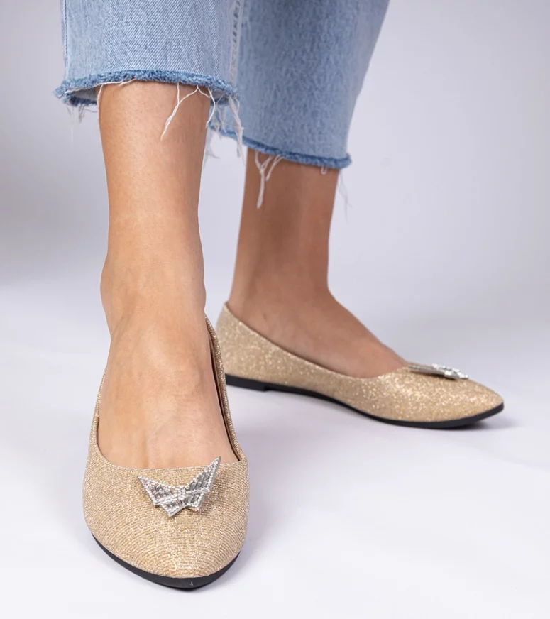 Jeśli szukasz obuwia, które połączy w sobie nowoczesny design i klasyczną elegancję, złote damskie balerinki brokatowe z motylkiem Denny są właśnie dla Ciebie. Dzięki nim poczujesz się pewnie i wyjątkowo, niezależnie od okazji. Wybierz jakość i styl, które oferuje marka Gemre, i ciesz się komfortem oraz pięknem każdego kroku.